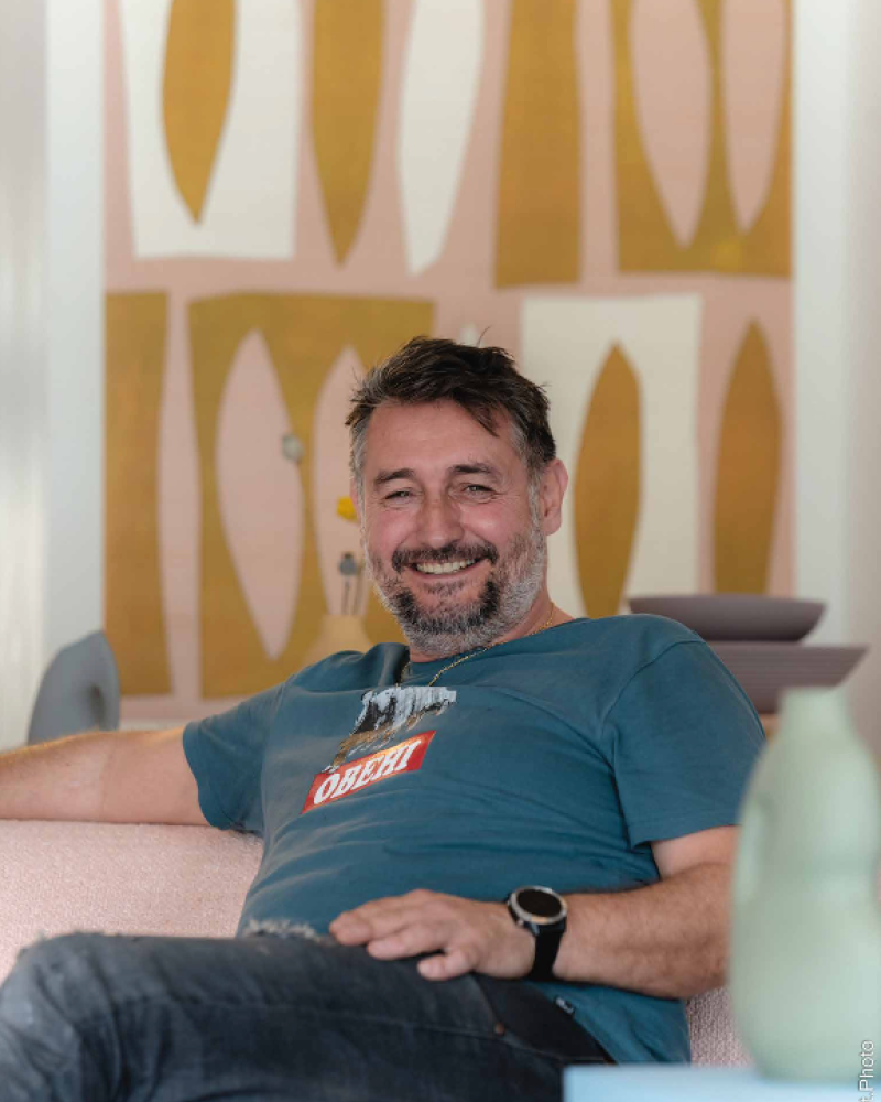 Fabien Itoiz est le fondateur et l'âme créative derrière Itoiz. Son parcours atypique, marqué par une énergie débordante et une curiosité insatiable, l'a conduit de peintre en bâtiment à pionnier du béton ciré au Pays basque.